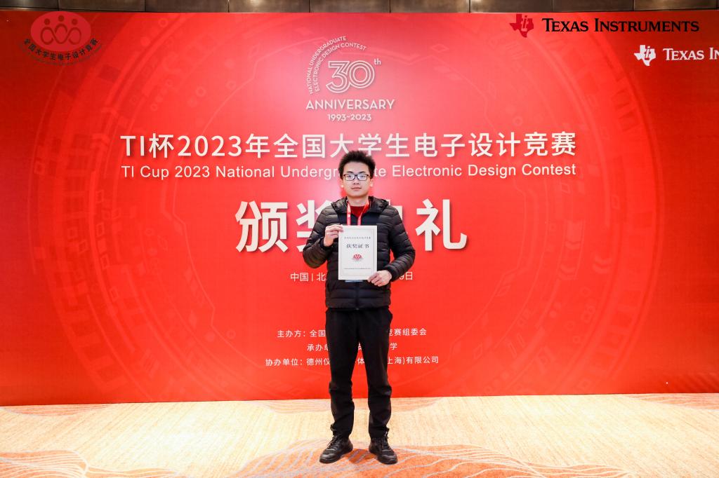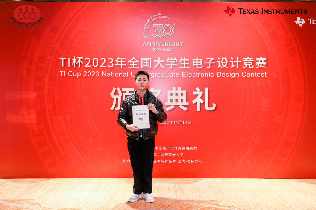 11月19日,2023年度TI杯全国大学生电子设计竞赛颁奖典礼暨全国大学生电子设计竞赛30周年庆典在北京隆重举行,全国优秀参赛队伍代表受邀前往北京接受表彰。kaiyun官网电子工程学院获奖指导教师代表韩桂明和学生代表秦发胜、梁璐受邀参加此次盛会。