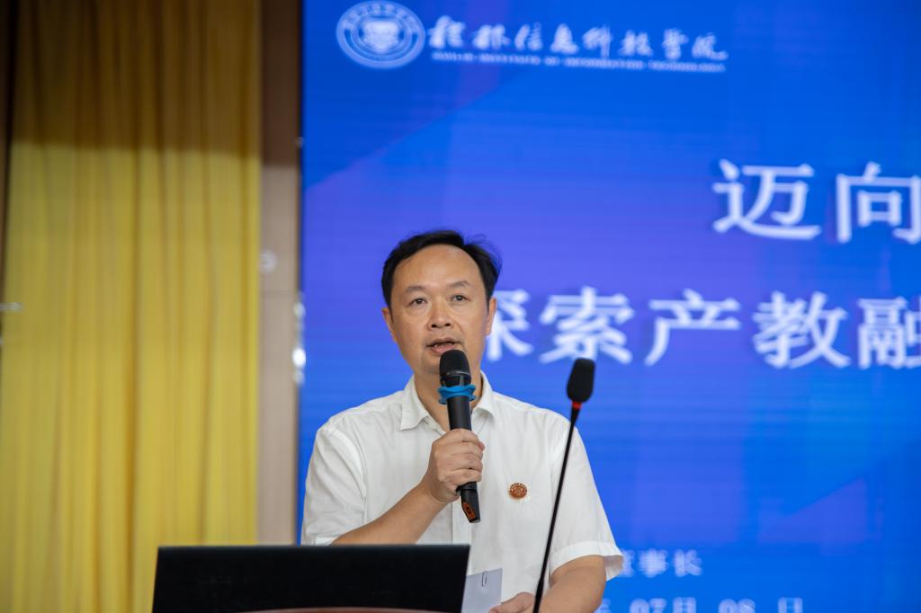 副校长刘跃峰阐述了当前社会经济背景下校企合作和产教融合对学校的重要意义,同时分享了学校与亿纬锂能等知名企业合作建设现代产业学院的情况,鼓励新教工积极参与校企协同育人工作,保持与产业发展的同步,共同推动学校产教融合发展。