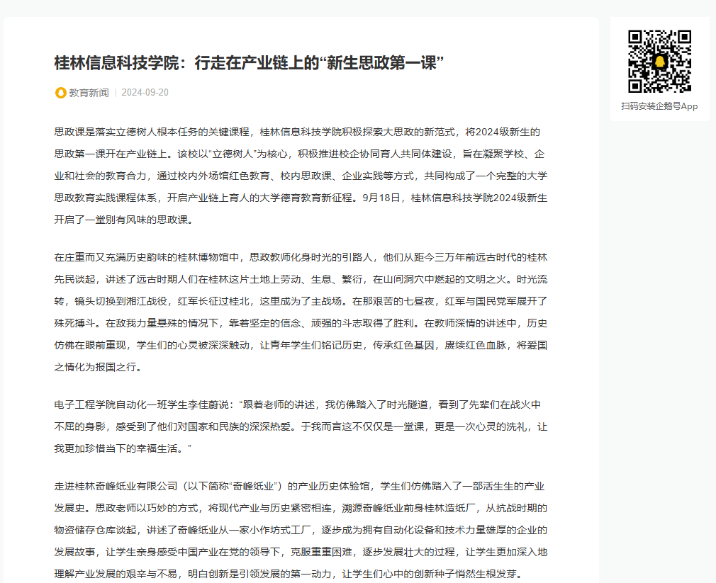 教育新闻链接:kaiyun登录中国入口登录:行走在产业链上的“新生思政第一课”_腾讯内容开放平台 (qq.com)